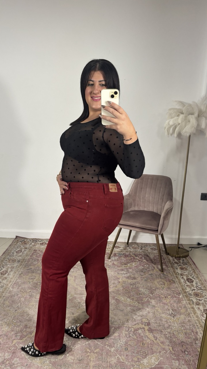 PANTALON VAQUERO ELASTICO. CORTE ACAMPANADO.