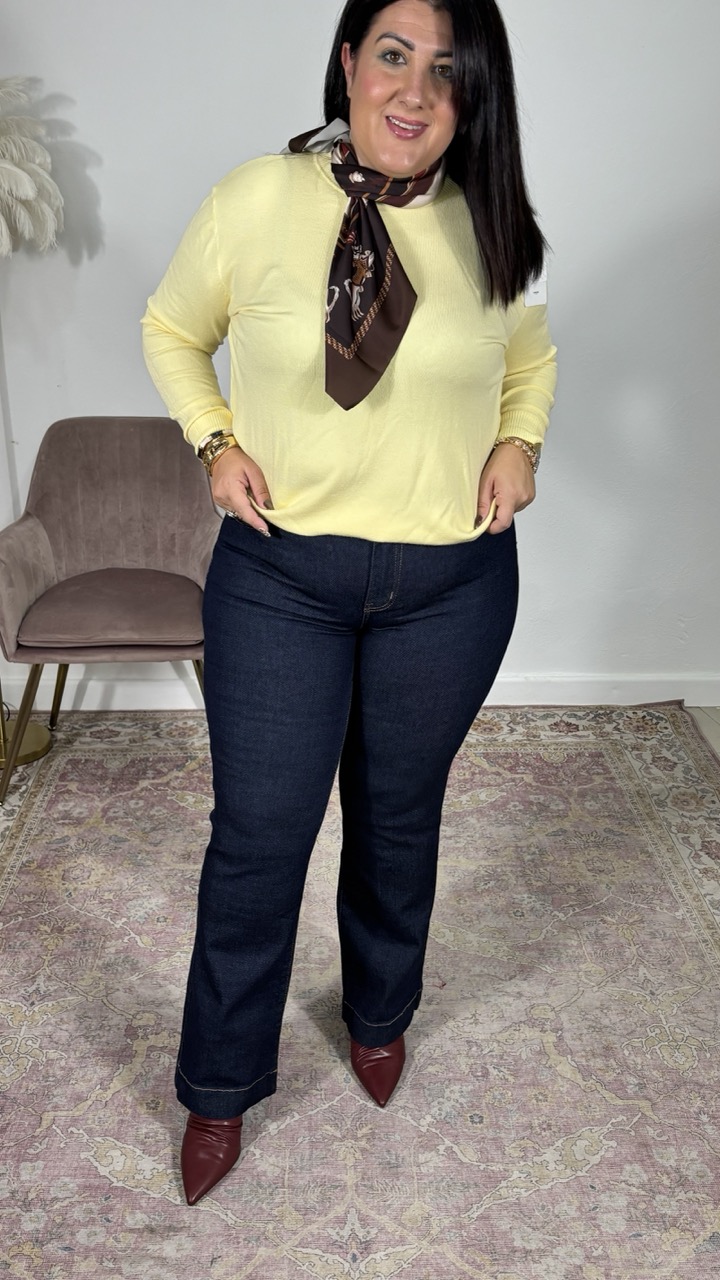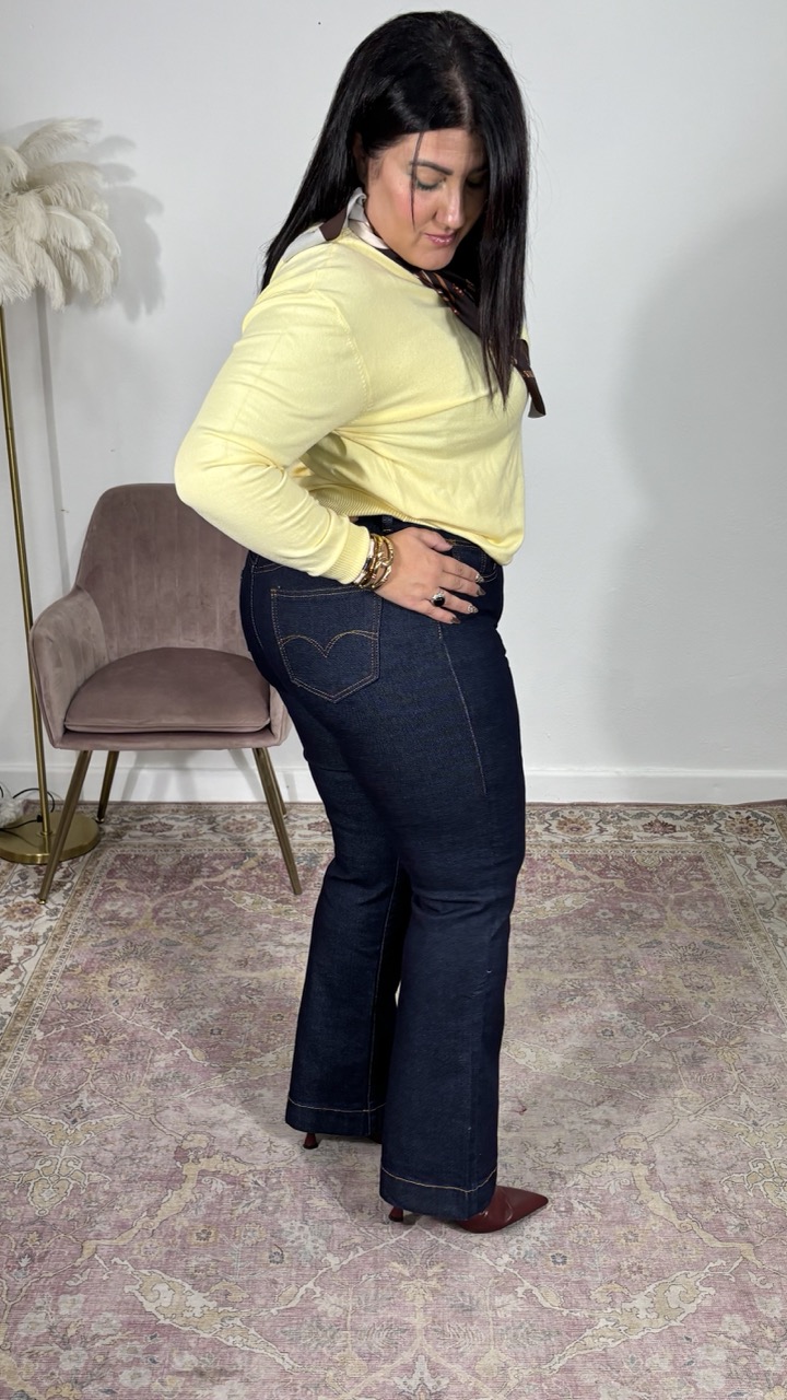 VAQUERO ELASTICO OSCURO. CORTE CAMAPANA. MODELO LLEVA TALLA XXL(44)